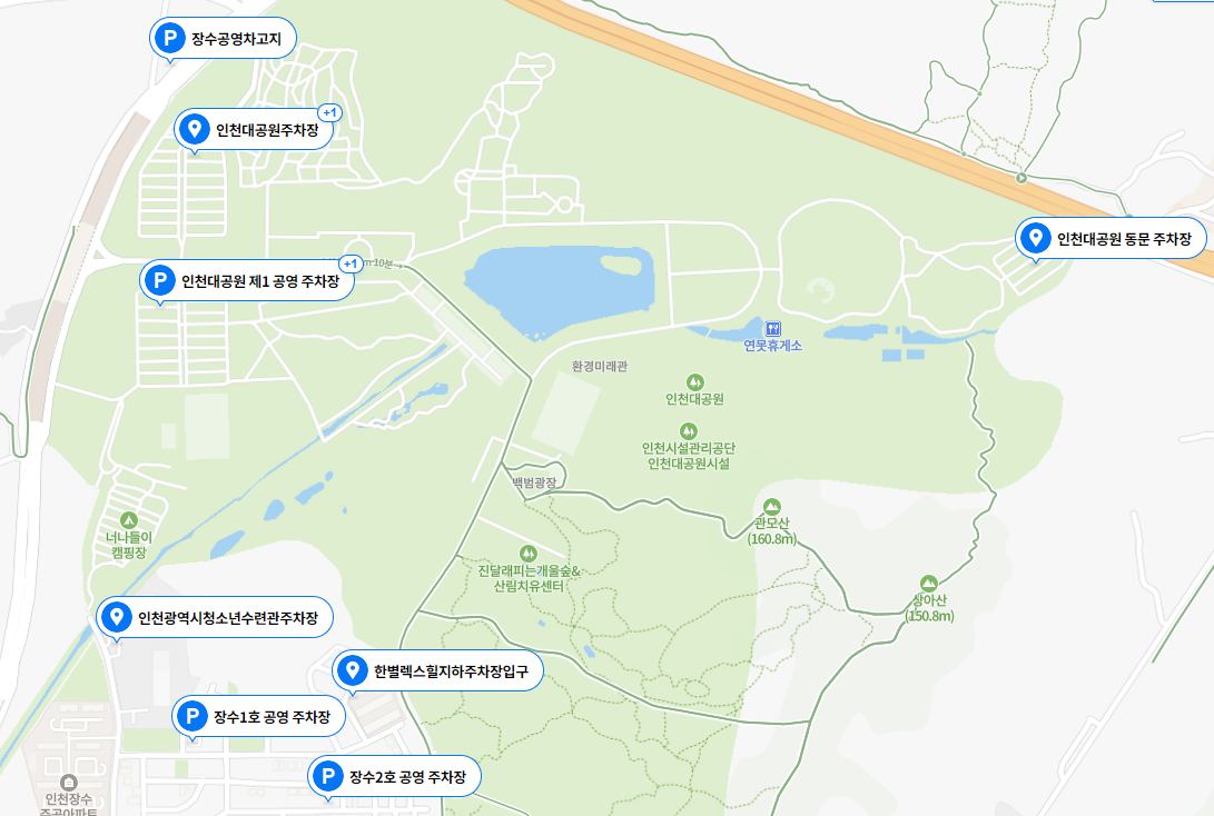 인천대공원 방문을 계획하신다면 아래 지도를 통해 훨씬 편하게 위치 확인이 가능하실 거예요!