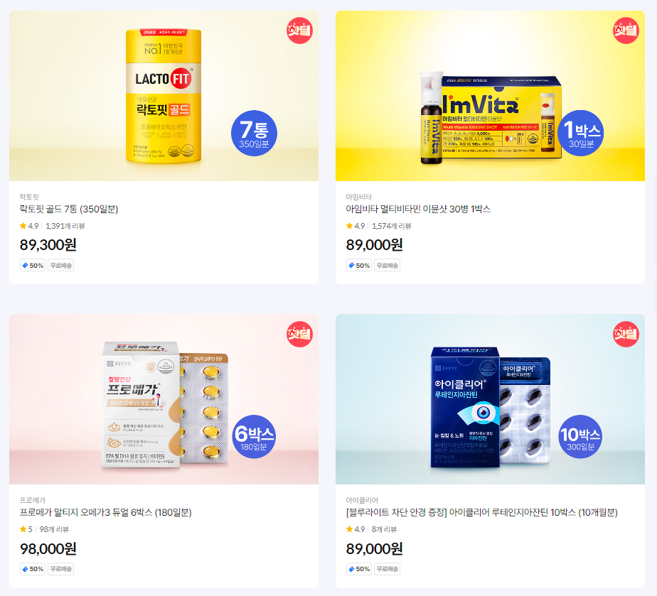 단 3일간 진행되는 50% 할인 행사, 평소에 비싸서 매번 구매하기 힘들었던 유산균, 루테인 등 등 가족 건강, 내 건강을 위한 건강보조식품을 이번 기회에 가장 저렴한 가격에 구매해 보세요!